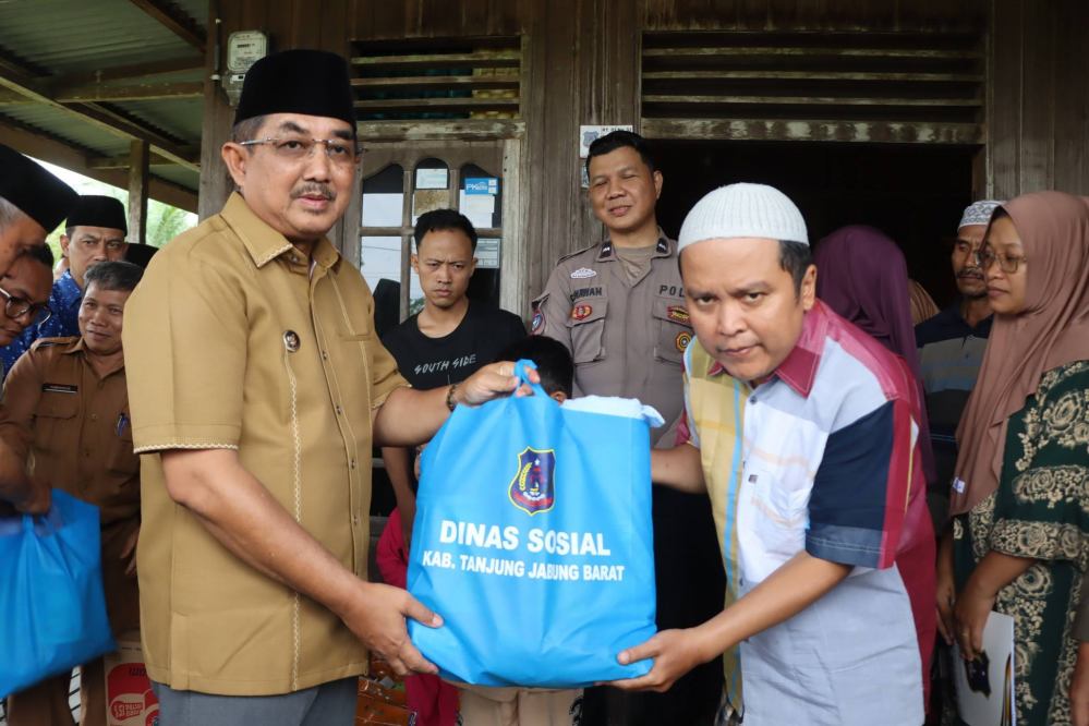Bupati Tanjung Jabung Barat, Drs. H. Anwar Sadat, M.Ag., menunjukkan kepeduliannya dengan turun langsung menyalurkan bantuan kepada korban kebakaran di Desa Jati Mas, Kecamatan Bram Itam, Selasa (20/01).