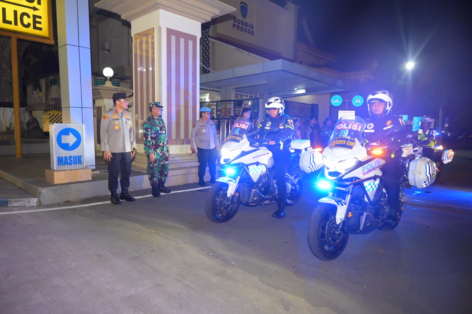 Patroli diikuti juga oleh Dirlantas Kombes Pol Adi Benny Cahyono, Dirreskrimum AKBP Jimmy C. Samma, Dirreskrimsus Kombes Pol Taufik Nurmandia, Dirresnarkoba Kombes Pol Dewa Palguna, Dir Samapta Kombes Pol Yohanes Wong Niti, serta Dir Pamovit Kombes Pol Taufik Sukendar.