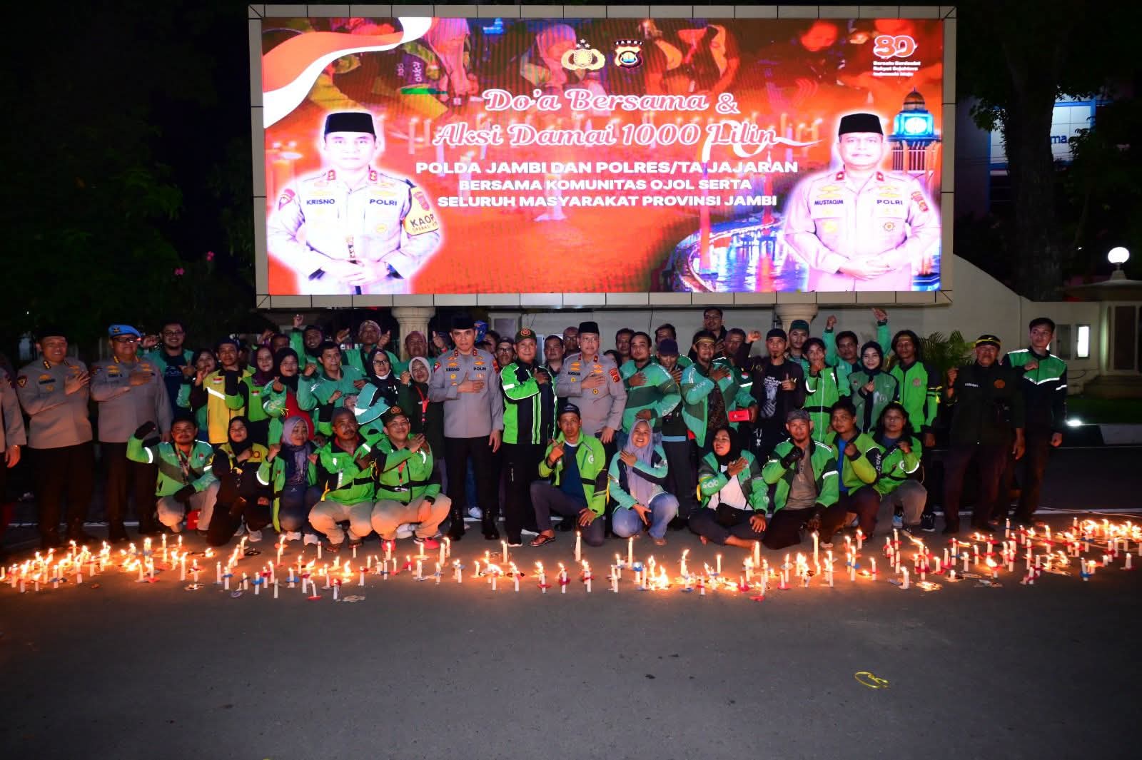 Polda Jambi Bersama Komunitas Ojol Hingga Elemen Masyarakat Gelar Aksi Damai 1000 Lilin