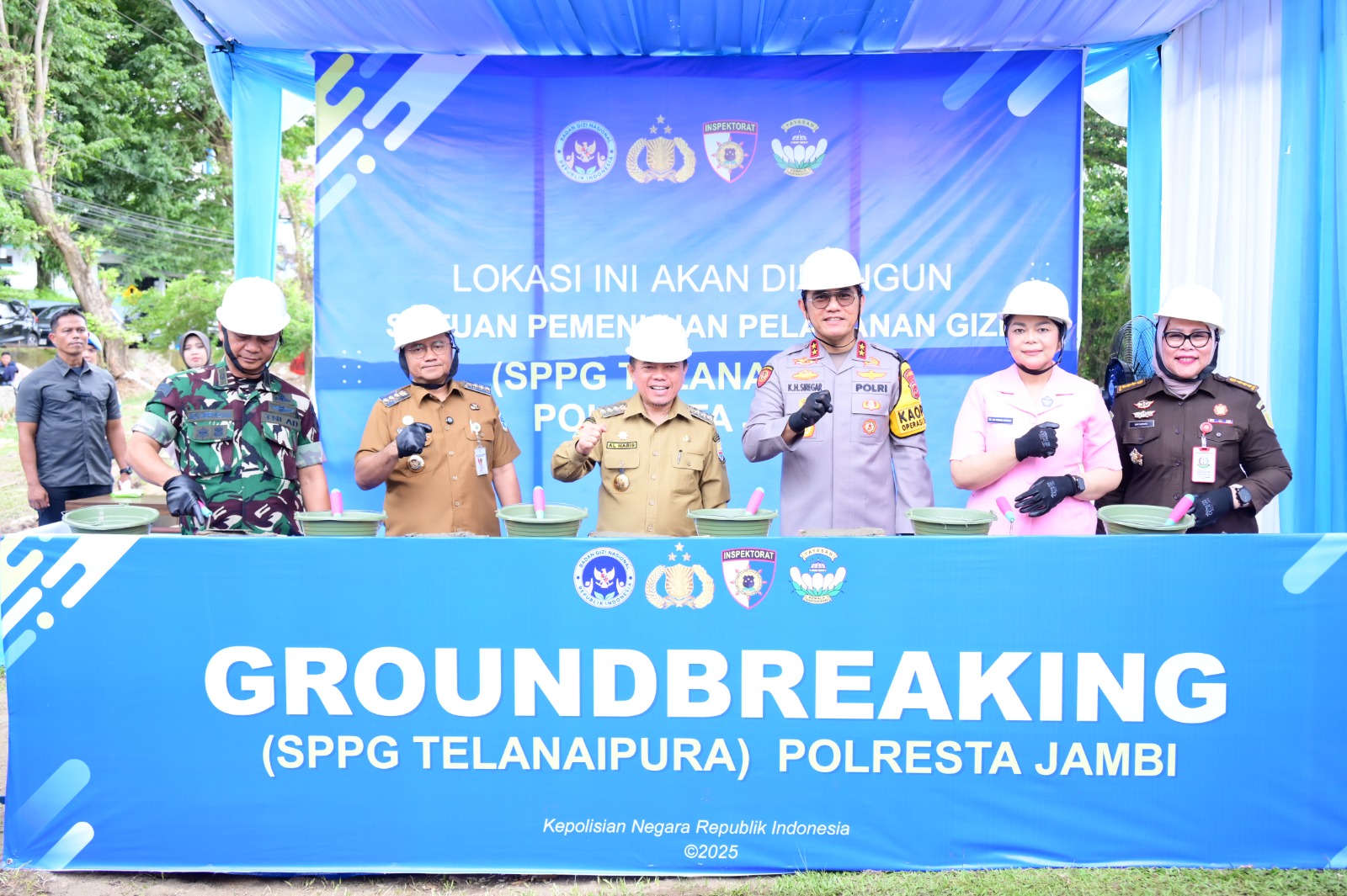 Kegiatan ground breaking secara nasional dipimpin langsung oleh Wakapolri, Komjen Pol. Prof. Dedi Prasetyo dan diikuti oleh jajaran Polda Jambi bersama unsur Forkopimda, pemerintah daerah, serta pemangku kepentingan terkait.